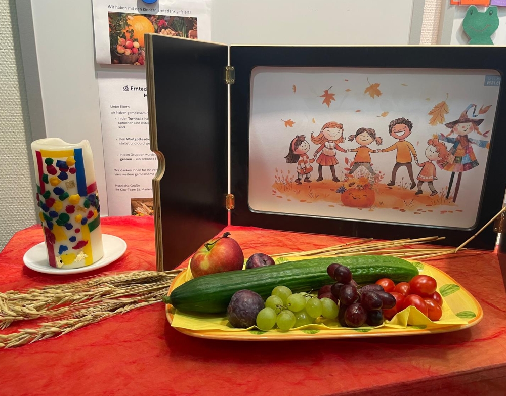 Die Kita St. Marien hat zum Wochenbeginn das Erntedankfest gefeiert – ein besonderer Tag, an dem wir innehalten und dankbar auf all das schauen, was uns die Natur schenkt.