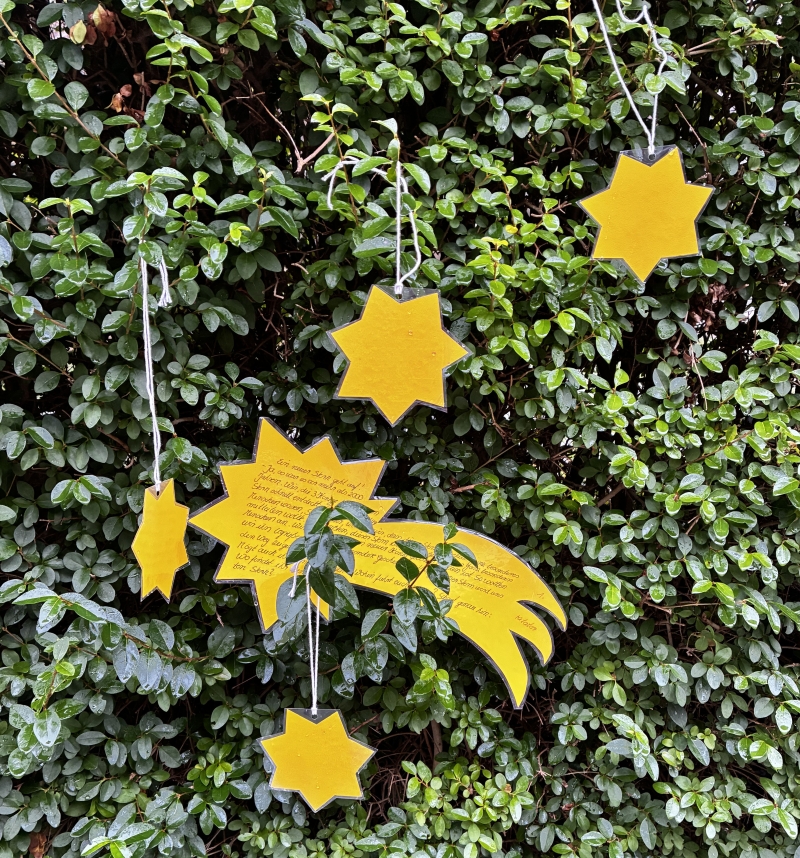 ⭐ Die Sterne, die die Kinder voller Begeisterung suchten, waren an Hecken, Straßenlaternen oder Zäunen rund um die Kita befestigt. Wie die Heiligen Drei Königen am Ende ihres Weges in Bethlehem an der Krippe standen, fanden auch die Kitakinder mithilfe der Sterne den Weg zum Christkind in der Krippe der Kirche St. Thomas Morus. Auf unserem Weg dorthin tauchten wir immer wieder in die biblische Geschichte der Heiligen Drei Könige ein. Das war ein schöner Ausflug, der den Weg zur Krippe für die Kinder lebendig machte.